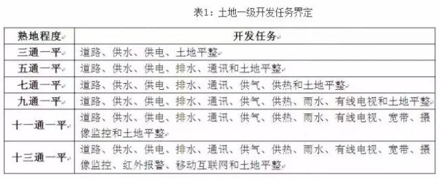 由此可见,土地开发是土地出让或项目开发的前期行为,以拆迁安置、土地平整和基础配套设施建设为重点,并以土地“由生变熟”为开发结果。我国产业园区“熟地”程度经历了从“三通一平”到“十三通一平”的渐进改变,如山东日照高新技术产业开发区即实现了土地一级开发的“十三通一平”。根据“熟地”程度不同,土地一级开发的内容不断丰富,开发成本也不断增加。